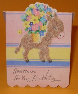 | vintage burro old Fuzzy Donkey Birthday Card |